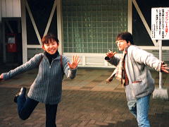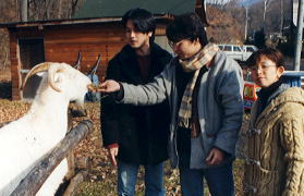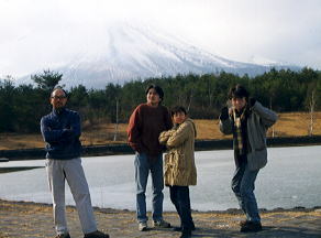 10:10雄大な浅間山をバックに、まずは記念撮影。身の引き締まる冷たい空気 と、遥かな風景に包まれて、ウッシーは『あぁ、雲になりたい.....。』割さん『あ ぁ、俳句読みたい.....。』すどぱぁ『白樺~青空~(北国の春)』と、3人3様感動を表現をする。しまムーはそんな3人を暖かく見守るのであった。