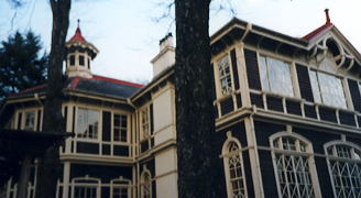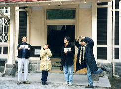 15:30。ミカドコーヒーを後にして『旧三笠ホテル』に見学に行く。このホテ ルはその昔、各界著名人(近衛公爵、島津男爵、乃木大将、大隈重信、渋谷栄一ら )が宿泊した由緒あるホテルであるが、現在は当時をしのぶ重要文化財として公開されている。よく『軽井沢に旅行なの。』なんてゆうと、『なんだ、ただの軟派ツアーか?』のように誤解されがちが、我々は違うのだ!そのへんの軽い旅ではない のだよ、君たち!ちゃんと軽井沢の歴史を学びに来たのだっ。見よ、証拠写真を! !