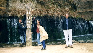 その足で観光名所『白糸の滝』を見学する。しかし、日本には一体幾つの『白糸の滝』があるのだろう?ちょろちょろと水が流れてれば、ほとんどが『白糸の滝』と呼ばれる国内現状の中で、ここ軽井沢の『白糸~』は、かなり高ランクに位置付けられるのではないかと思う。眺める自分達のまわりを、ぐるりと滝が囲んでおり、まるで円形舞台。今回は水量も豊富だったことに加え、平日で観光客が誰も居ないという好条件。しばし、ゆっくりと滝を堪能したのだっ た。。。