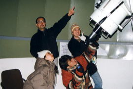 夜9:30。夕食の後、ペンション近くにある『巨大望遠鏡付き天文台』へ移動。 この辺一帯は、天体観測に適しているのか、リゾートマンションの屋上などに、天文台が設置されているところも多く、今回はその天文台のひとつをお借りできたのであった。いままで『望遠鏡を覗いたことがある』なんて言っても、せいぜい、サランラップの芯くらいの大きさの望遠鏡であった我々は、ここの望遠鏡を目の当たりにして息を飲んだ!なんと大砲クラスのドデカさであるっ!!とにかく凄い!本格的だぁ~!と、感心感心。『これで、みんなに土星の輪を見せてあげたい!』と 、しまムー。しまムーはかつて、このクラスの望遠鏡を操作したことがあるらしい 。期待は高まる。.......しかし、ここで最も心配していたことが起こった。雲が出てきてしまったのだ!ん~~っ、巨大望遠鏡でも雲には勝てない!ということで、 しばし空が晴れるのを待つことにする。時間が空いた!といえば.....そう!UNO であるっ!!!