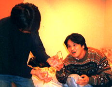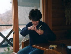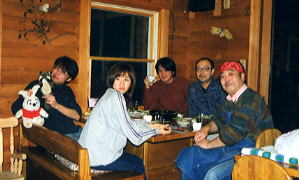 土星の感動を胸に、ペンションに戻った我々は『さぁ、この感動が覚めないうちに .....。』と、またしても『UNO・10番勝負』に挑む!深夜2:20終了(笑) 。順位は・しまムー・割さん・すどぱぁ・またしてもウッシー(笑)という結果。 どうも今夜はツキがないウッシーだったが、明日に賭ける!と宣言し、終了。『さ ぁて寝るか。。。。』とベットに入ったところ、2:40事件発生!!!なんと、 割さんの眼鏡が壊れたのだ。しかも、触ってないのに『眼鏡のネジ』が不自然に抜 け、眼鏡のつるが取れてしまった。これは、以前から(前回のバッ旅の時も)起こ っていた怪現象で、眼鏡を前に一同恐れおののく。霊の仕業か?恐いっ、、、でも 、眠いので眠る(笑)3:00就寝。