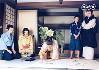 原作では、姫路城で武蔵が開かずの間に閉じ込められ、3年間精神修行。そして、城主池田輝政から”宮本武蔵”という名を与えられ、仕官の誘いを断り、剣で生きたい!と武者修行へと旅立つが、今回は開かずの間に閉じ込められる間もなく京へ逃亡。これには思わず『ん?』と思ってしまったが、その謎は、来週の予告を見てすぐに解明した。なんと!来週早くも吉岡清十郎と立ち合うではないか!しかも、清十郎に全く歯がたたなかった武蔵が描かれるなんて・・・これは、原作とは全く違う設定だ。う〜ん、個人的には、未熟な武蔵のままで、軽がるしく吉岡と立ち合って欲しくはなかった。タケゾウ時代は勝てなかったが、修行後のムサシは勝つ!そうすればドラマチックだ!盛り上がると思ったのか?
