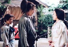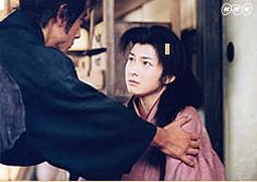 武蔵が姫路城を抜け出し、街を走り抜ける際、茶屋で働くお通とニアミスするが、運命のいたずらか?お互い顔を合わせる事もなく離れてしまう。原作では、新免武蔵から宮本武蔵になり、武者修行に旅立つ際、『一緒に連れてって』というお通に対して、『許してたもれ』と、橋に刀で彫った文字を残し1人修行に出るが、今回のこのシーンを見て、『なんでこんなにいろいろ設定が変わってしまうのか?』と、考えてしまった。ビデオで2回見てやっと気が付いたが、全ては、お通の設定が根本(こんぽん)違うからではないか?という結論に行き着いた。原作では弱々しいお通で、武蔵に対して”恋愛感情を持つ”のに対して、